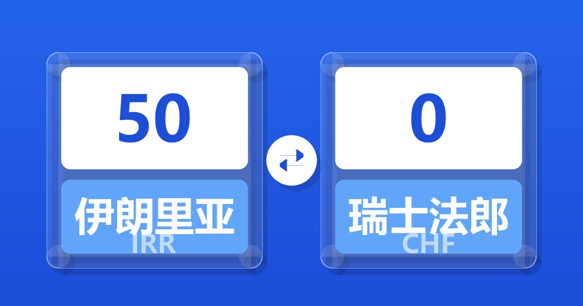 50 伊朗里亚尔 (IRR) = 0.00 瑞士法郎 (CHF)