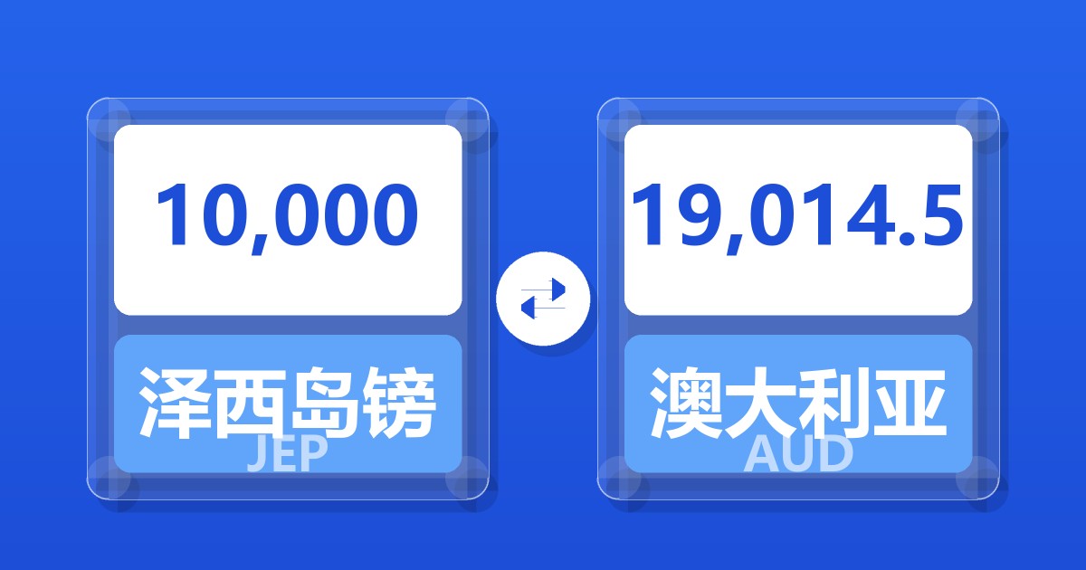 10,000 泽西岛镑 (JEP) = 19,044.68 澳大利亚元 (AUD)