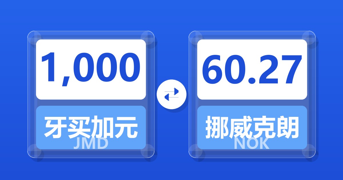 1,000 牙买加元 (JMD) = 60.72 挪威克朗 (NOK)