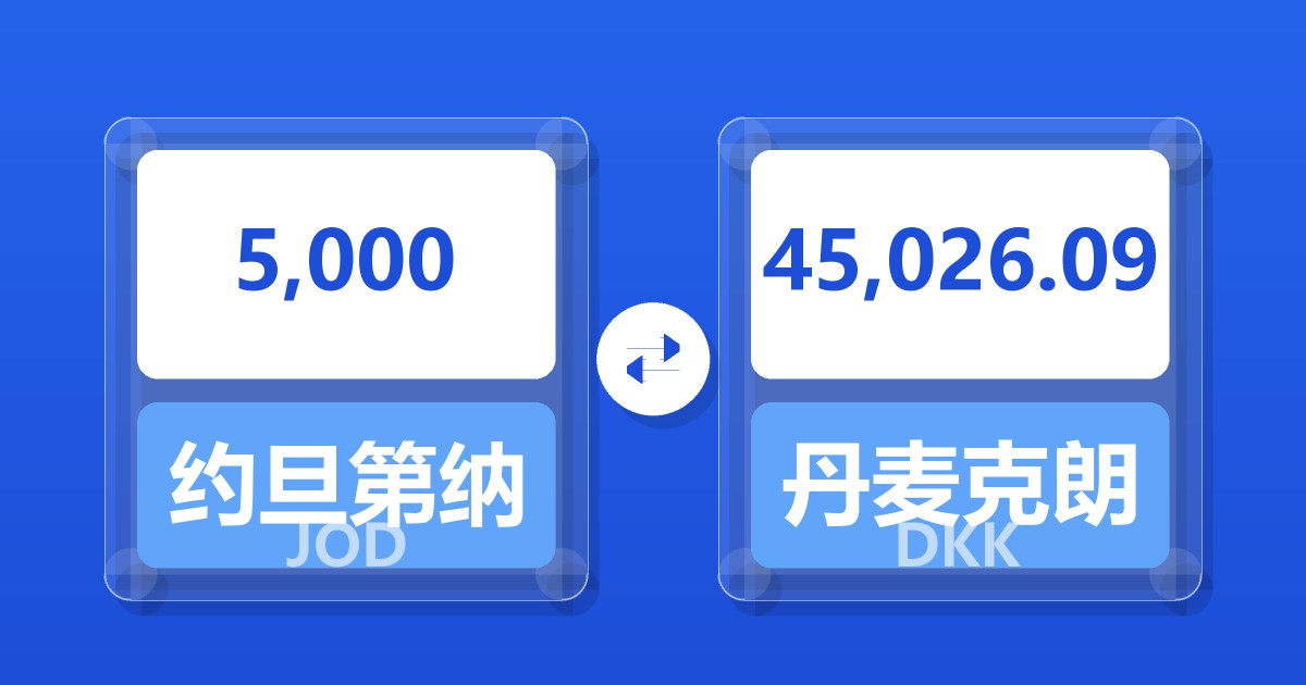 5,000 约旦第纳尔 (JOD) = 45,046.54 丹麦克朗 (DKK)