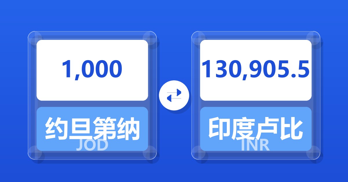 1,000 约旦第纳尔 (JOD) = 130,570.66 印度卢比 (INR)