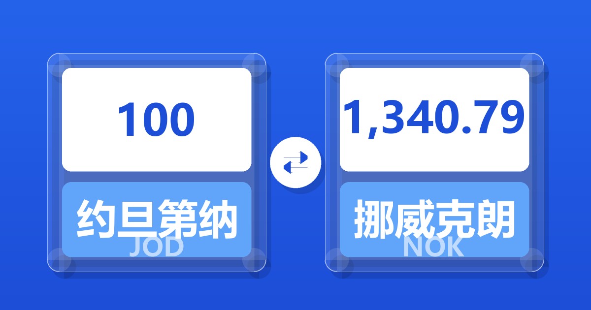 100 约旦第纳尔 (JOD) = 1,349.03 挪威克朗 (NOK)
