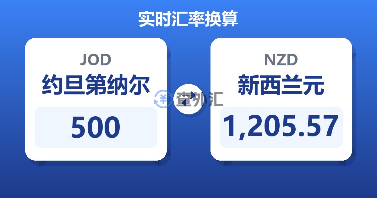 500 约旦第纳尔 (JOD) = 1,210.30 新西兰元 (NZD)