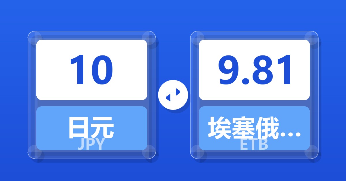 10 日元 (JPY) = 9.86 埃塞俄比亚比尔 (ETB)