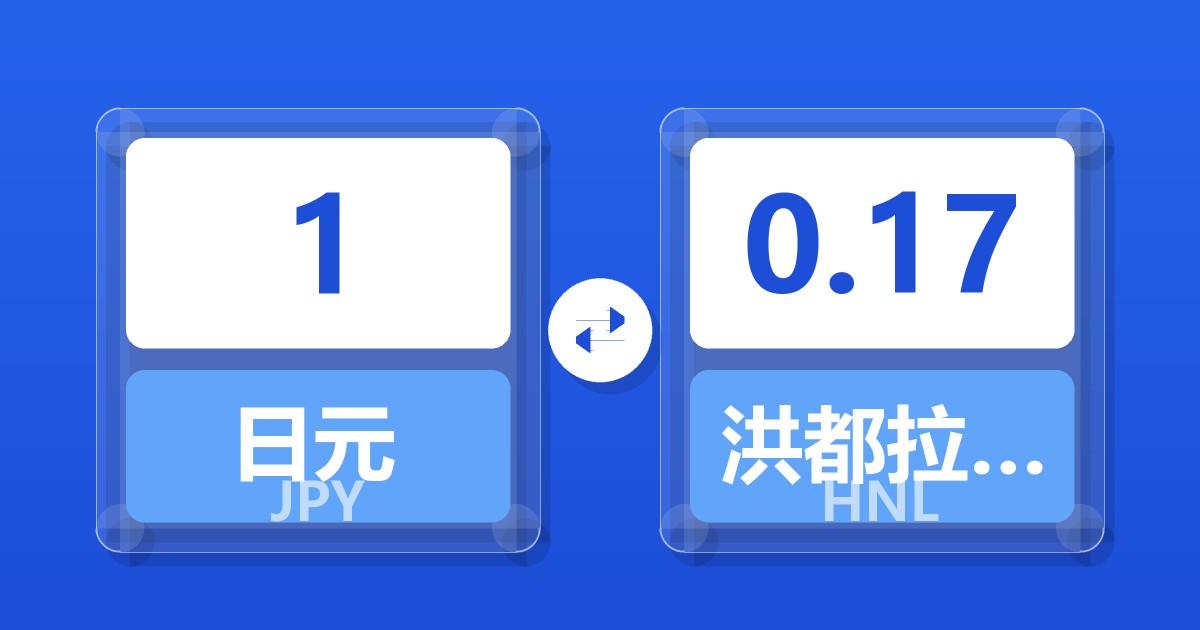 1 日元 (JPY) = 0.17 洪都拉斯伦皮拉 (HNL)