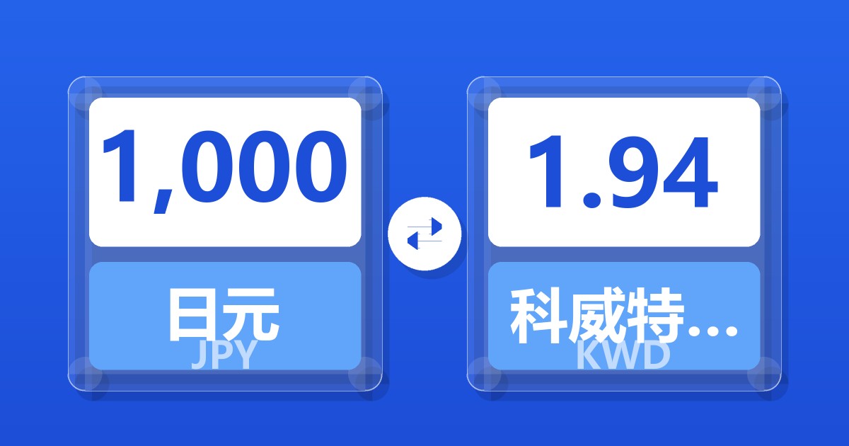 1,000 日元 (JPY) = 1.95 科威特第纳尔 (KWD)