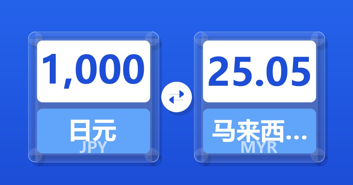 1,000 日元 (JPY) = 25.09 马来西亚林吉特 (MYR)