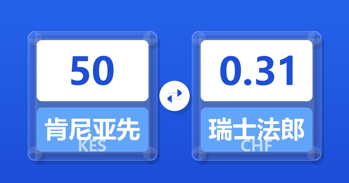 50 肯尼亚先令 (KES) = 0.31 瑞士法郎 (CHF)