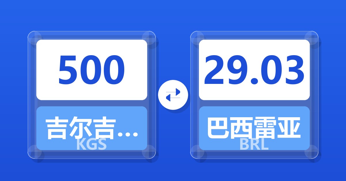 500 吉尔吉斯斯坦索姆 (KGS) = 29.15 巴西雷亚尔 (BRL)