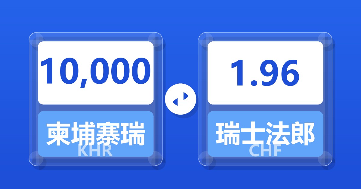 10,000 柬埔寨瑞尔 (KHR) = 1.96 瑞士法郎 (CHF)