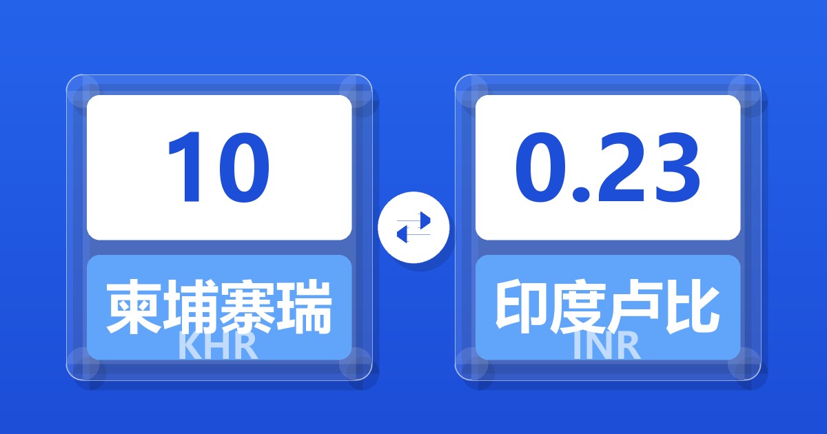 10 柬埔寨瑞尔 (KHR) = 0.23 印度卢比 (INR)