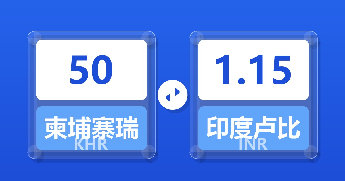 50 柬埔寨瑞尔 (KHR) = 1.15 印度卢比 (INR)