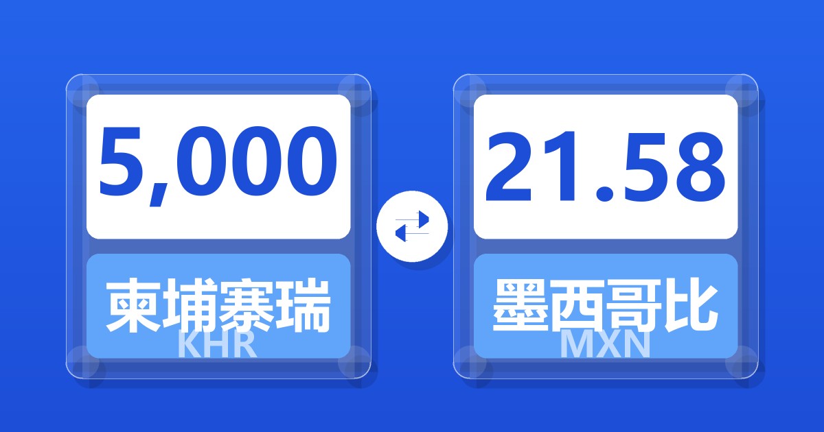 5,000 柬埔寨瑞尔 (KHR) = 21.65 墨西哥比索 (MXN)