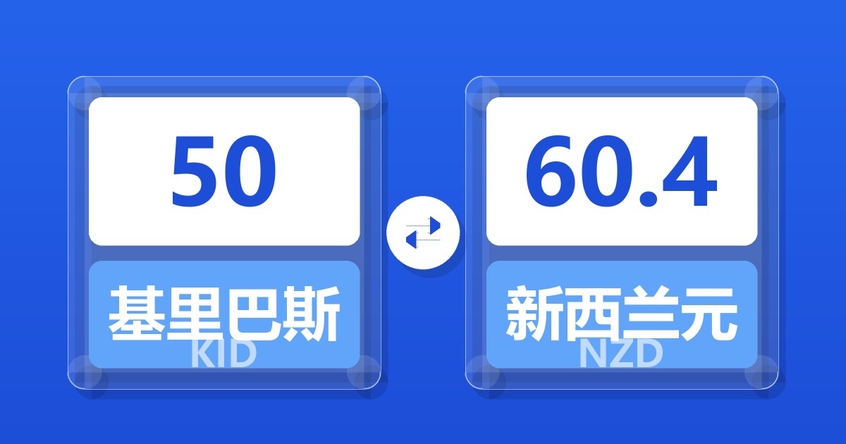 50 基里巴斯元 (KID) = 60.47 新西兰元 (NZD)