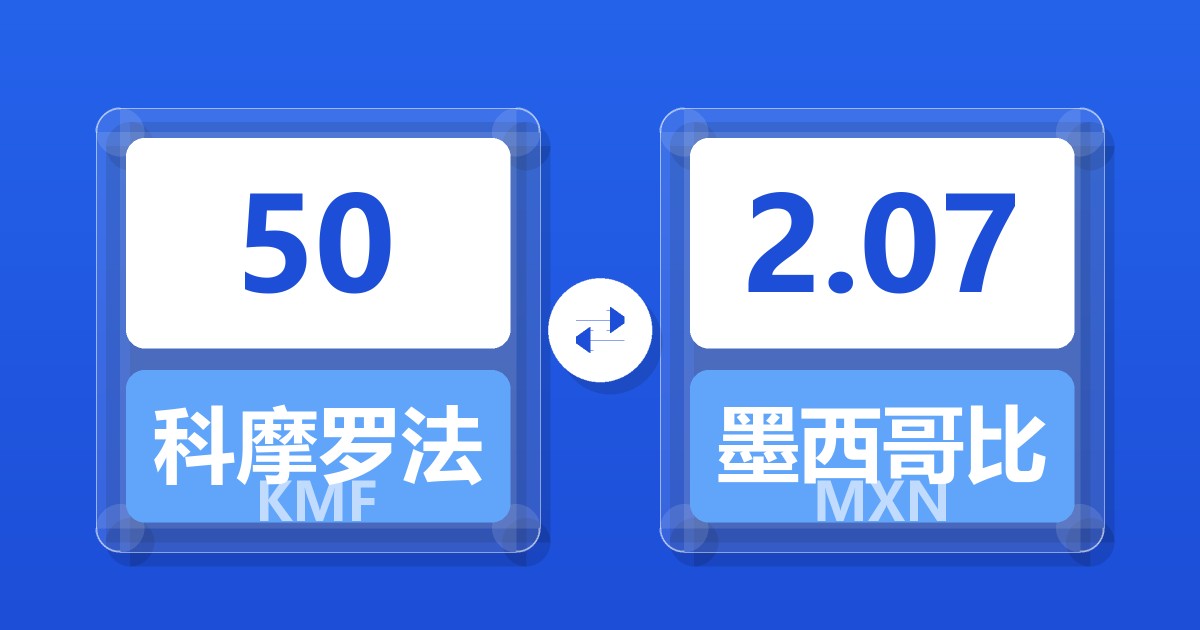 50 科摩罗法郎 (KMF) = 2.07 墨西哥比索 (MXN)