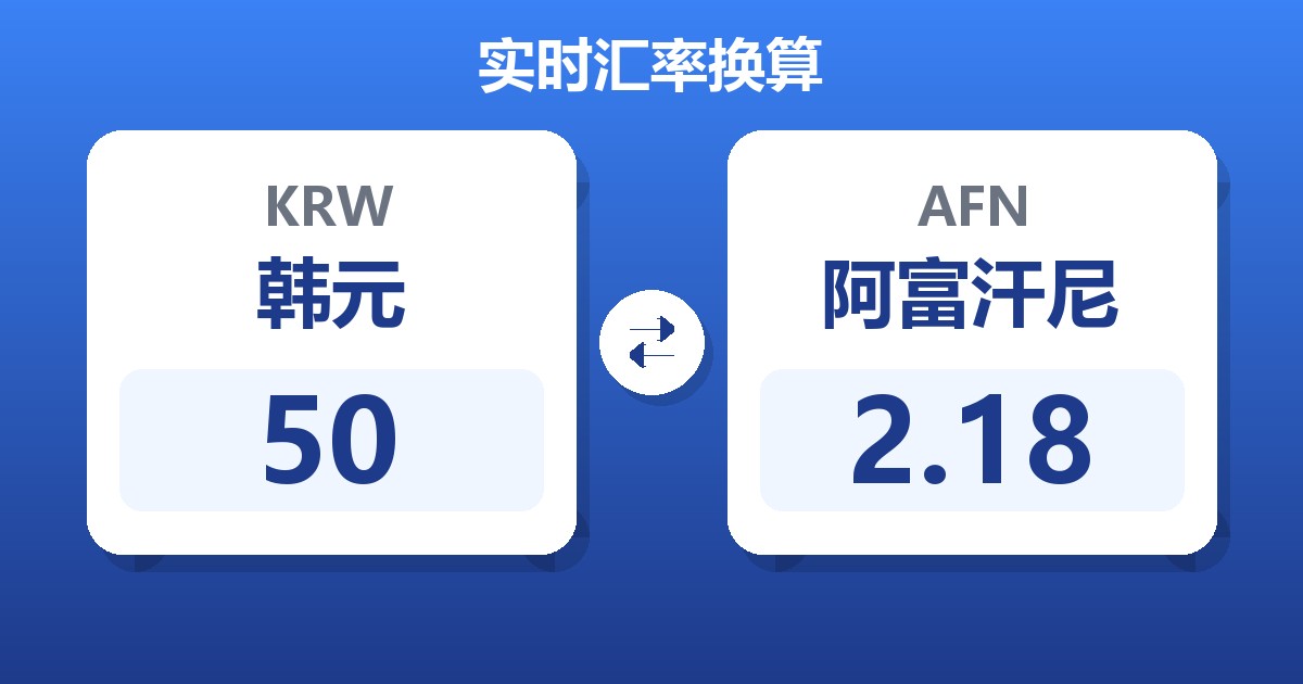 50 韩元 (KRW) = 2.20 阿富汗尼 (AFN)