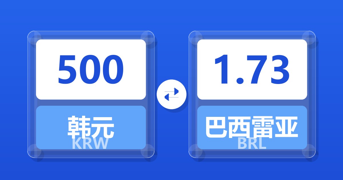 500 韩元 (KRW) = 1.73 巴西雷亚尔 (BRL)