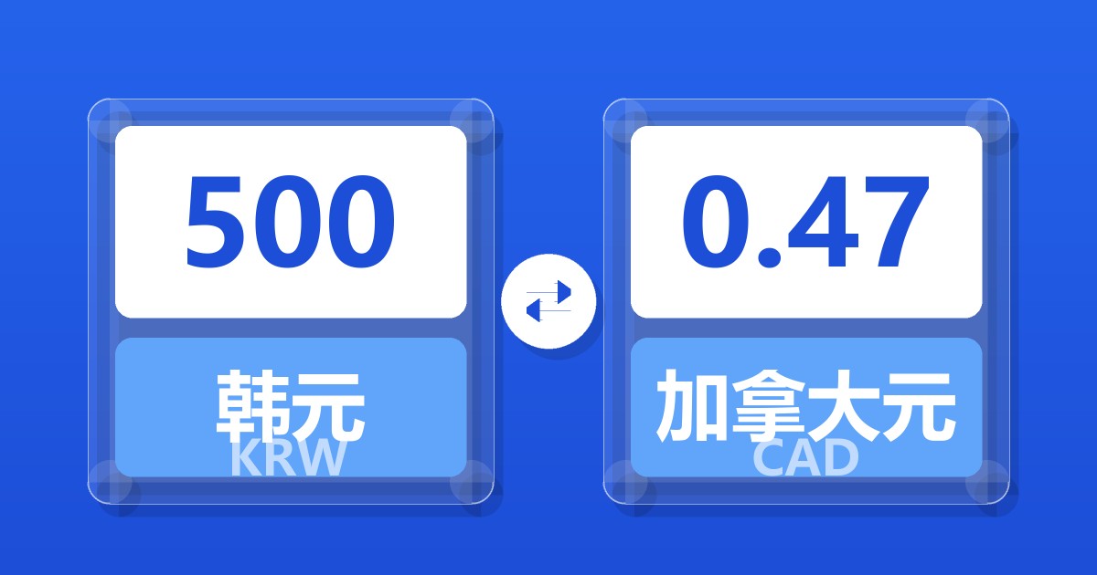 500 韩元 (KRW) = 0.47 加拿大元 (CAD)