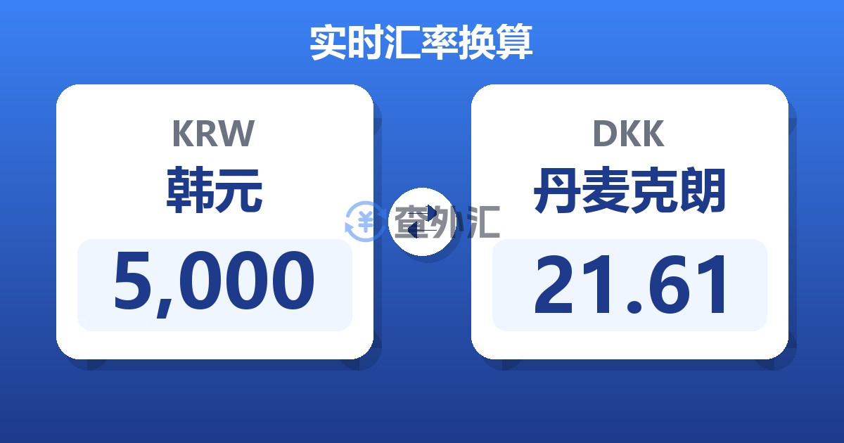 5,000 韩元 (KRW) = 21.61 丹麦克朗 (DKK)