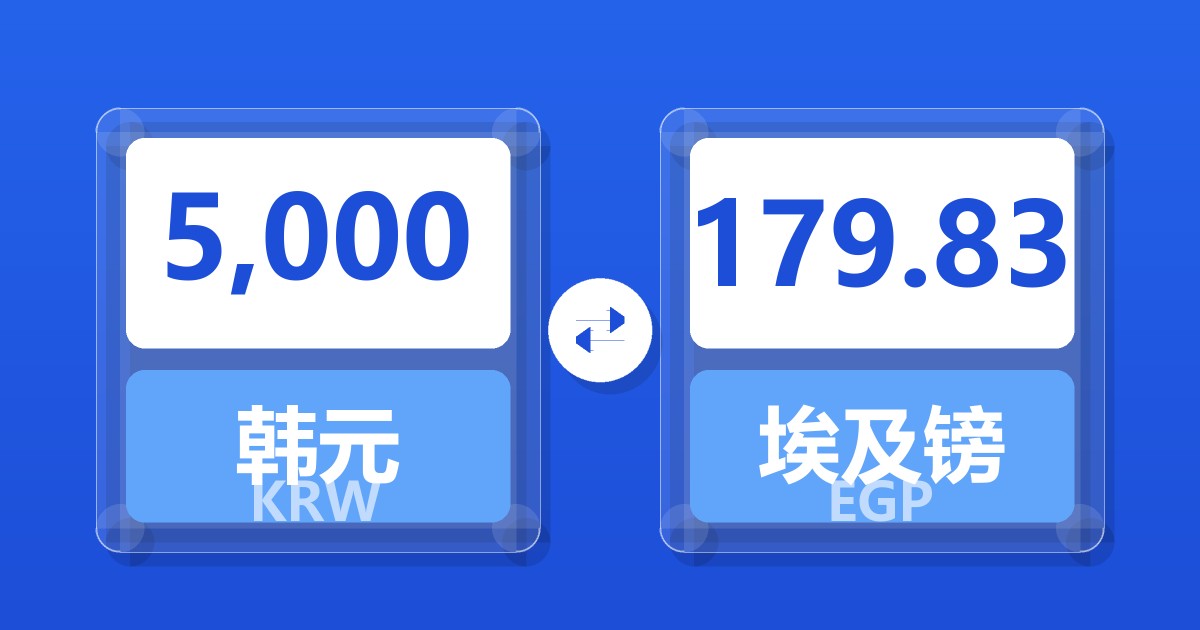 5,000 韩元 (KRW) = 180.37 埃及镑 (EGP)