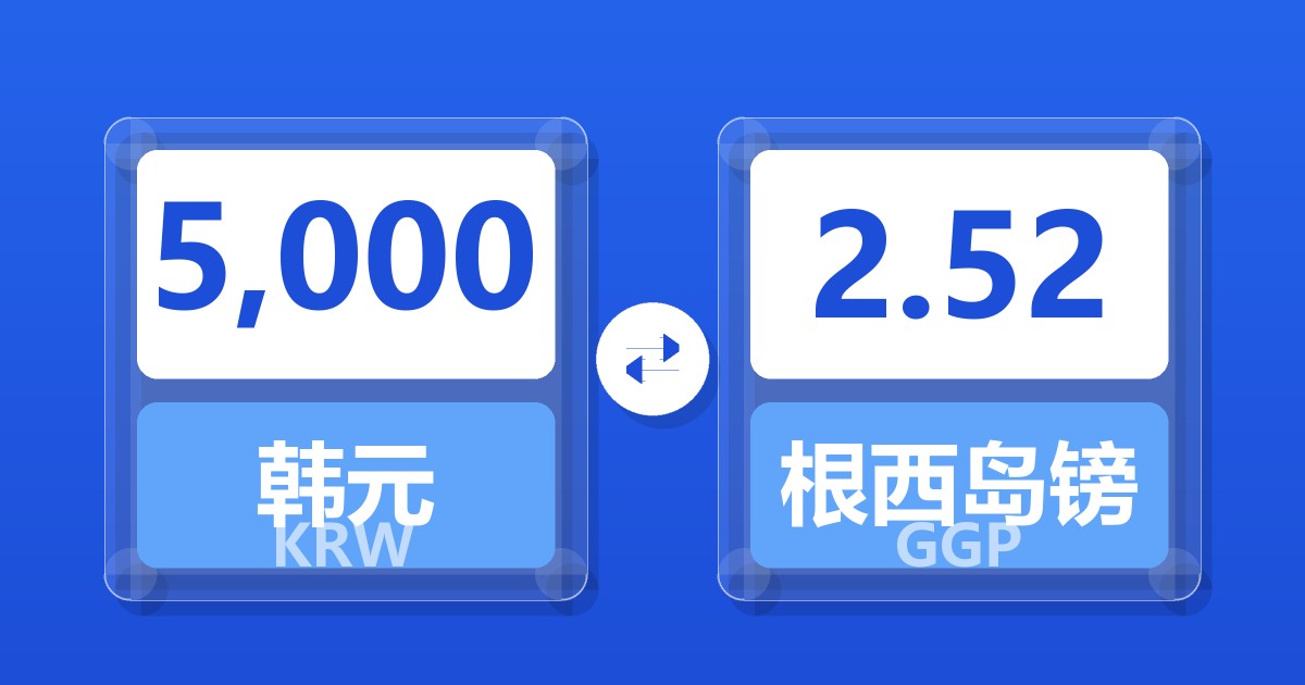5,000 韩元 (KRW) = 2.52 根西岛镑 (GGP)