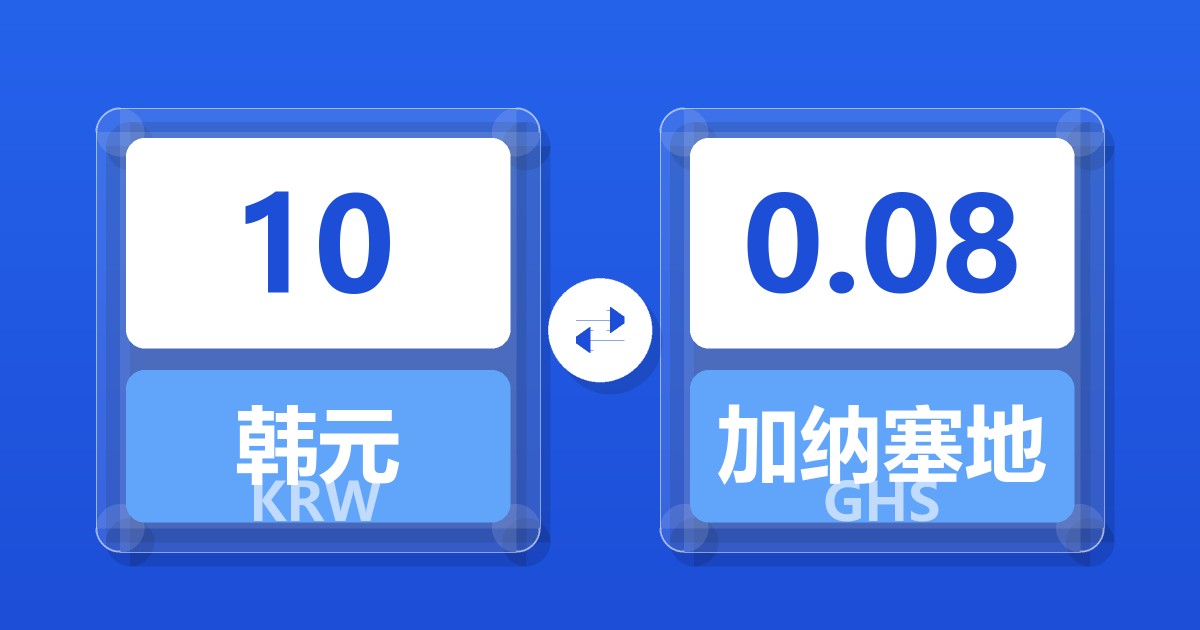 10 韩元 (KRW) = 0.07 加纳塞地 (GHS)