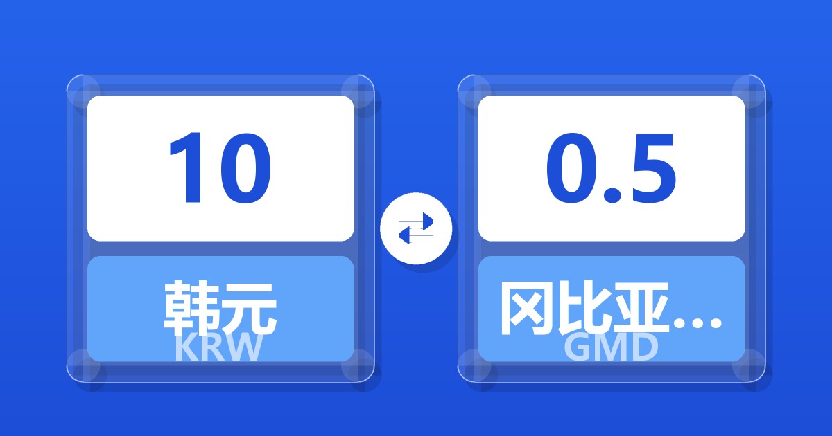 10 韩元 (KRW) = 0.50 冈比亚达拉西 (GMD)