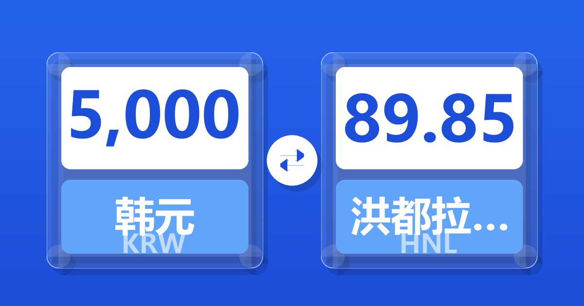 5,000 韩元 (KRW) = 89.85 洪都拉斯伦皮拉 (HNL)