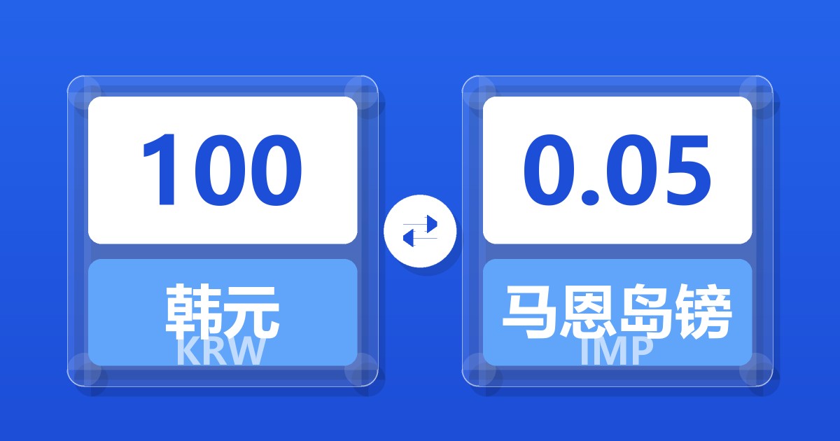 100 韩元 (KRW) = 0.05 马恩岛镑 (IMP)