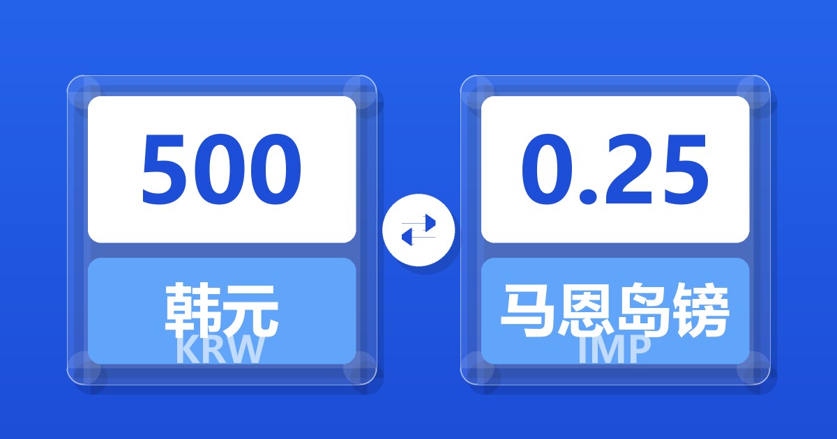 500 韩元 (KRW) = 0.25 马恩岛镑 (IMP)