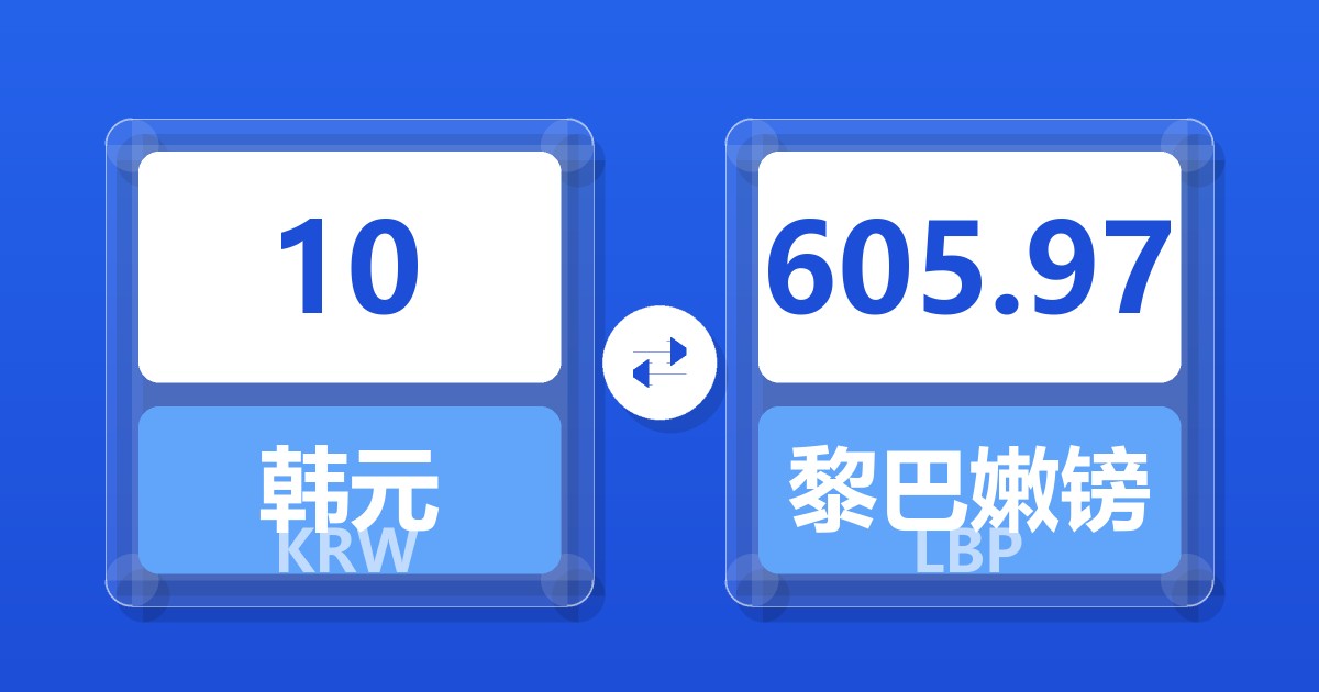 10 韩元 (KRW) = 605.53 黎巴嫩镑 (LBP)
