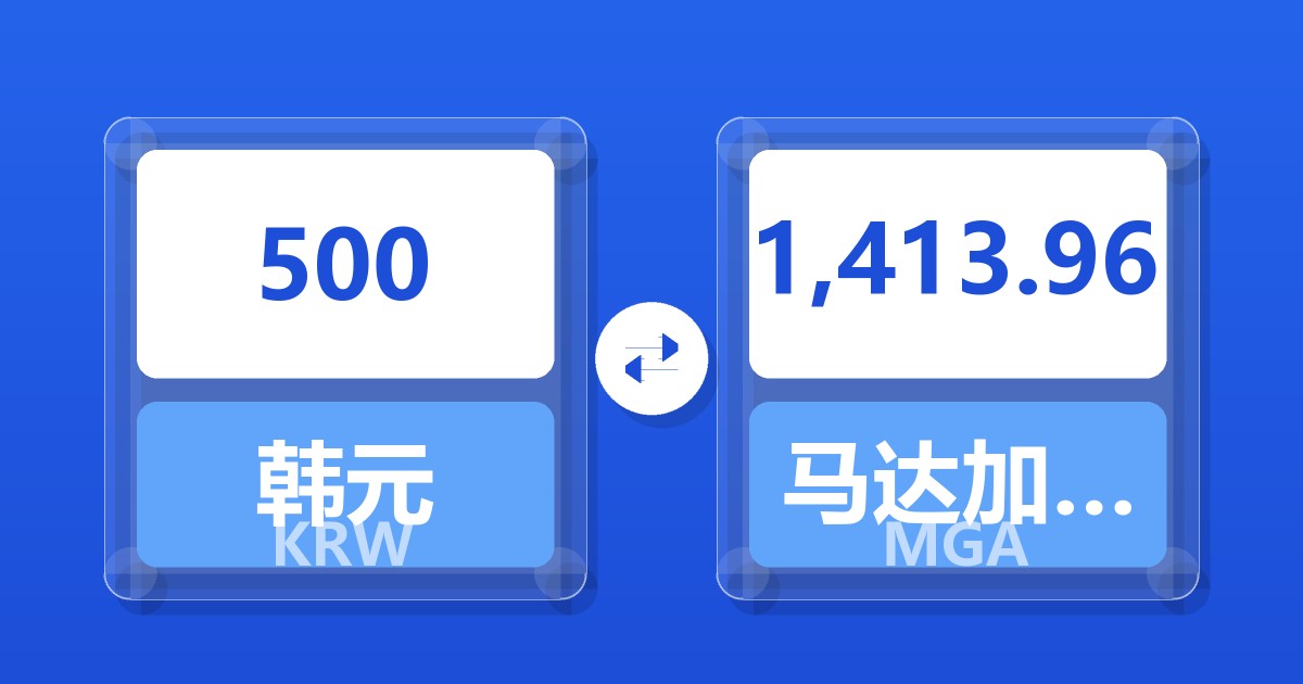 500 韩元 (KRW) = 1,408.58 马达加斯加阿里亚里 (MGA)