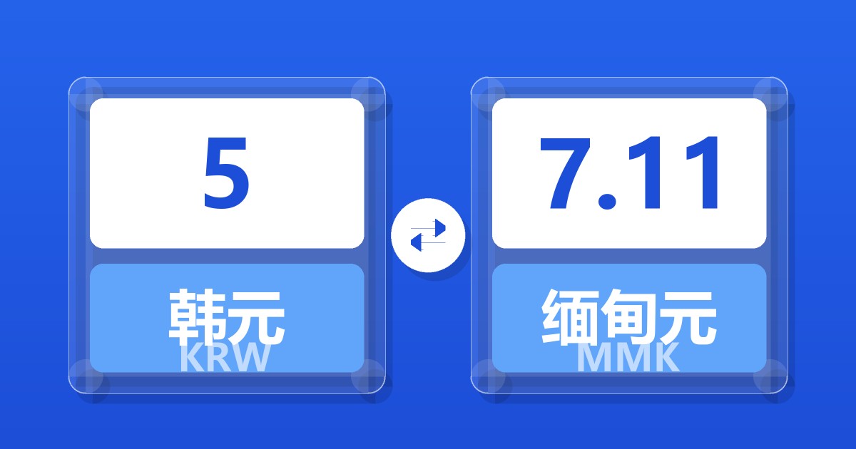 5 韩元 (KRW) = 7.11 缅甸元 (MMK)
