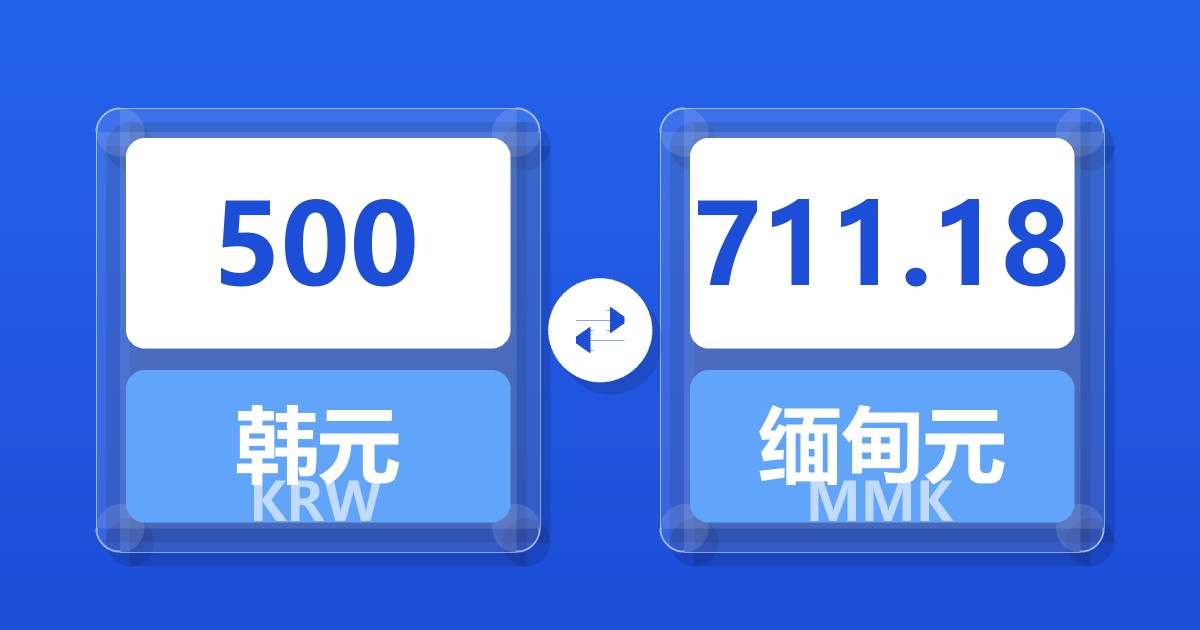 500 韩元 (KRW) = 710.81 缅甸元 (MMK)