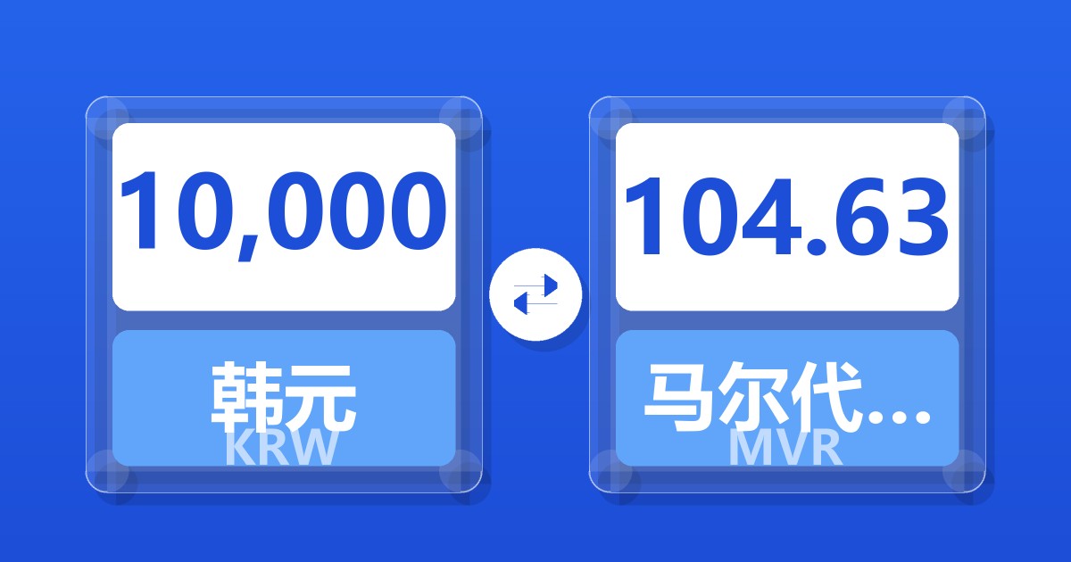 10,000 韩元 (KRW) = 104.55 马尔代夫拉菲亚 (MVR)