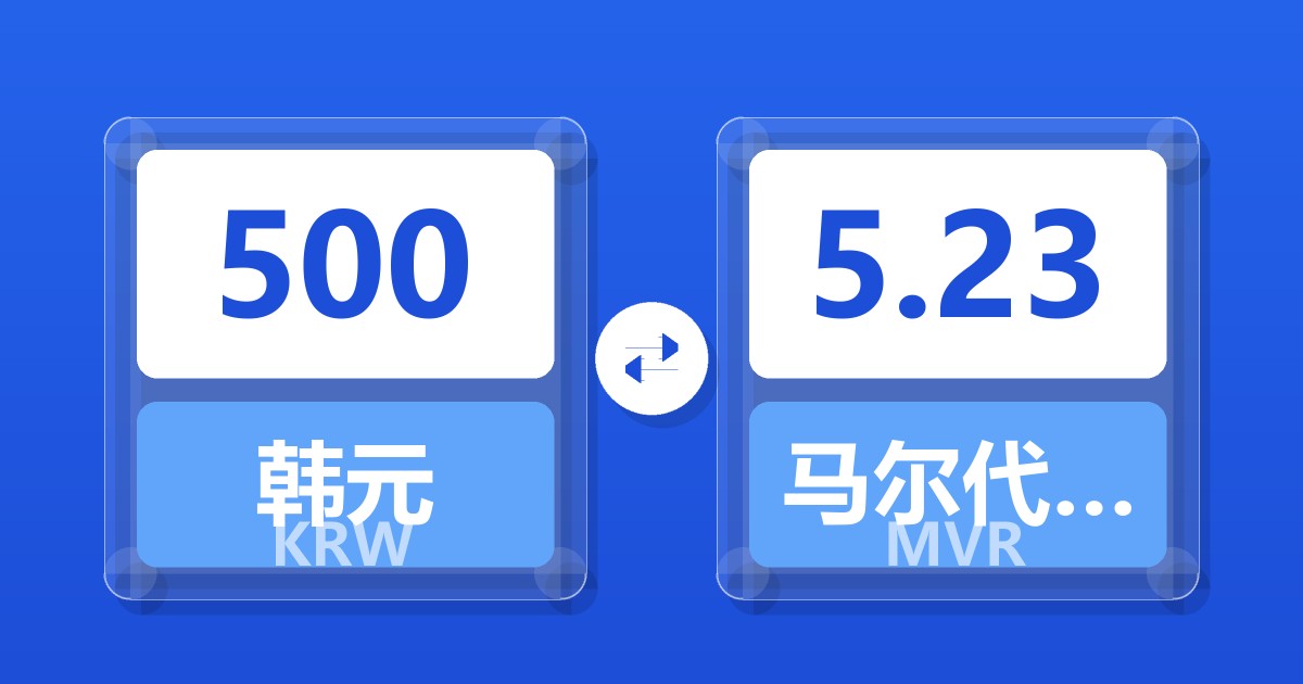 500 韩元 (KRW) = 5.23 马尔代夫拉菲亚 (MVR)