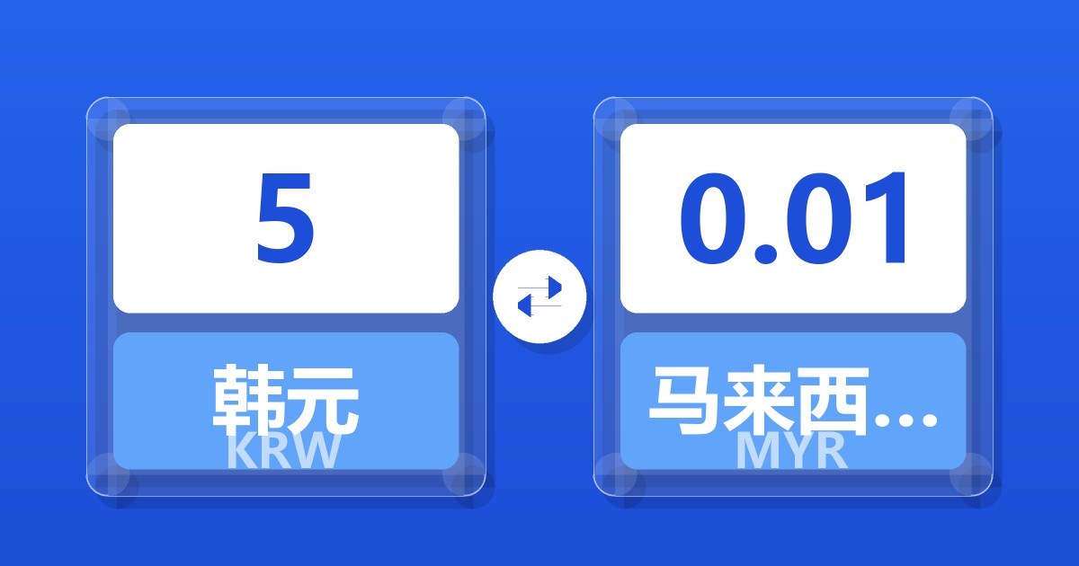 5 韩元 (KRW) = 0.01 马来西亚林吉特 (MYR)