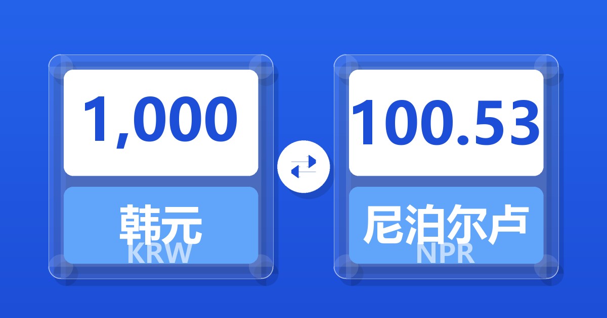 1,000 韩元 (KRW) = 100.21 尼泊尔卢比 (NPR)