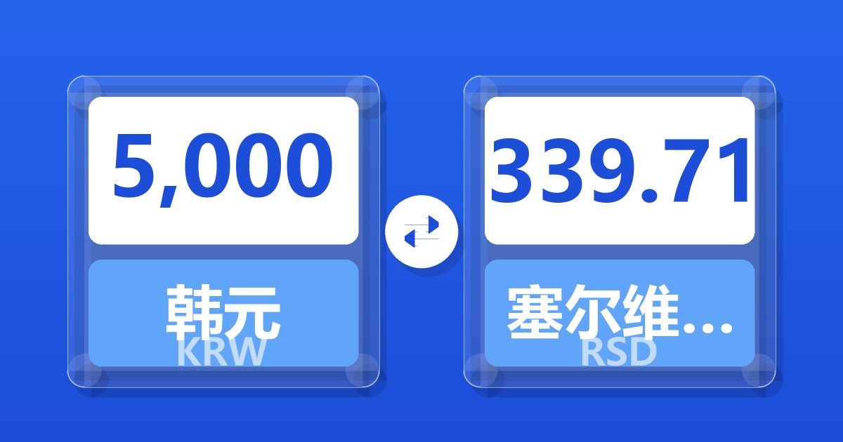 5,000 韩元 (KRW) = 339.71 塞尔维亚第纳尔 (RSD)