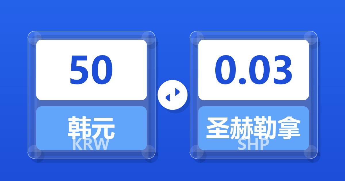 50 韩元 (KRW) = 0.03 圣赫勒拿镑 (SHP)