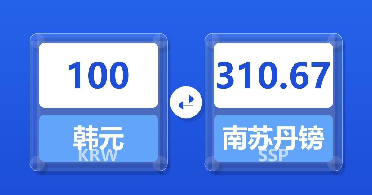 100 韩元 (KRW) = 310.34 南苏丹镑 (SSP)