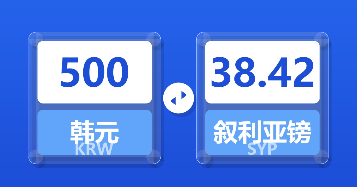 500 韩元 (KRW) = 38.42 叙利亚镑 (SYP)