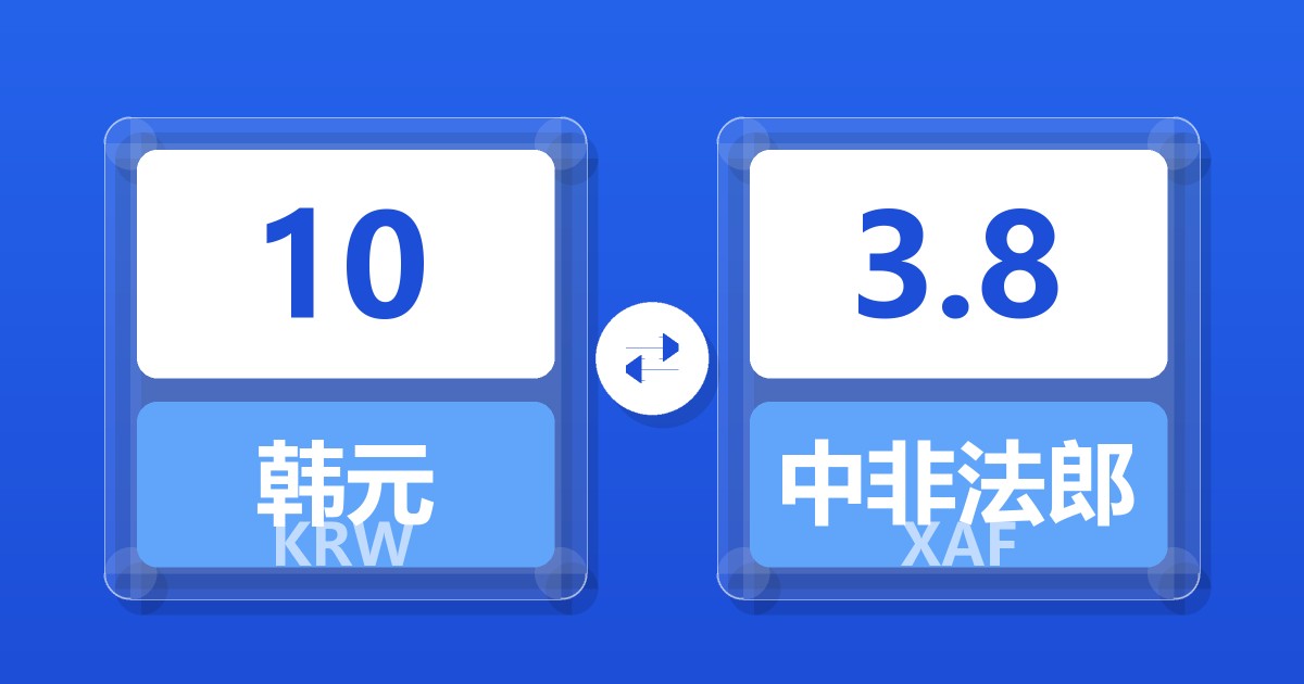 10 韩元 (KRW) = 3.80 中非法郎 (XAF)