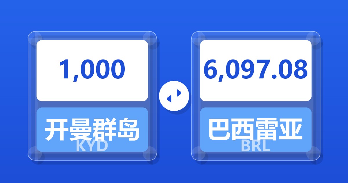 1,000 开曼群岛元 (KYD) = 6,123.36 巴西雷亚尔 (BRL)