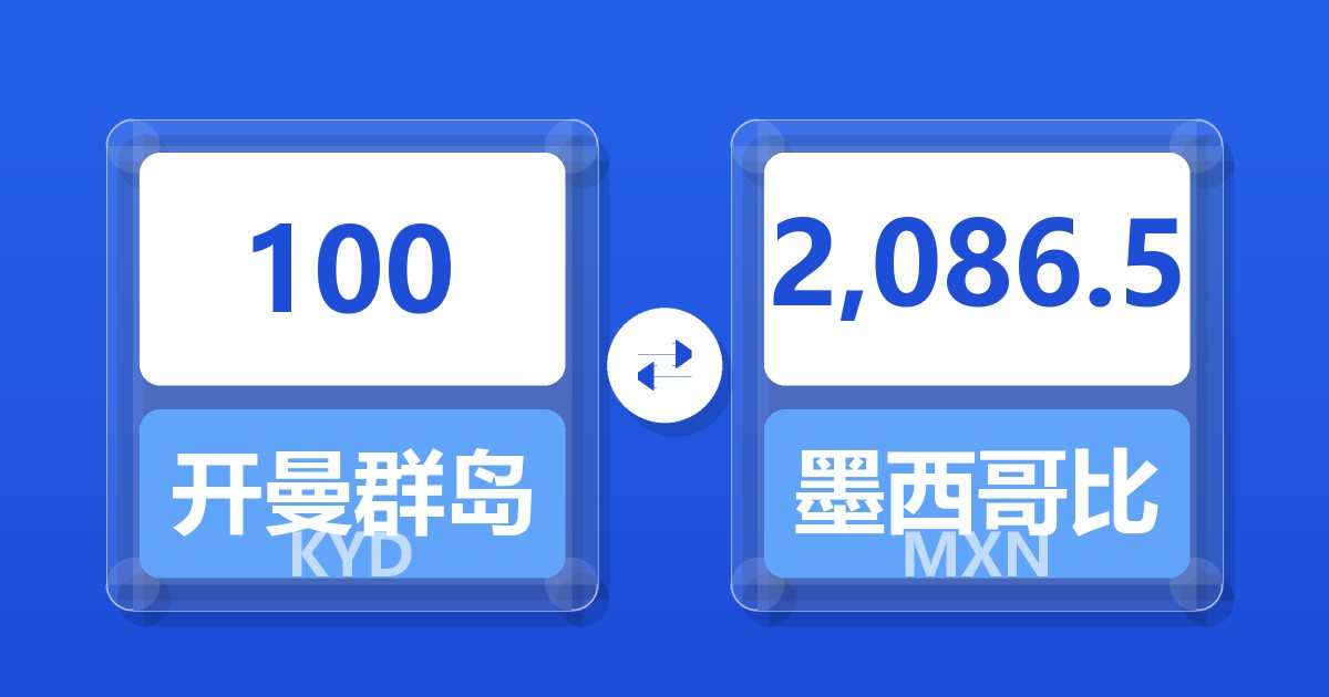 100 开曼群岛元 (KYD) = 2,092.32 墨西哥比索 (MXN)
