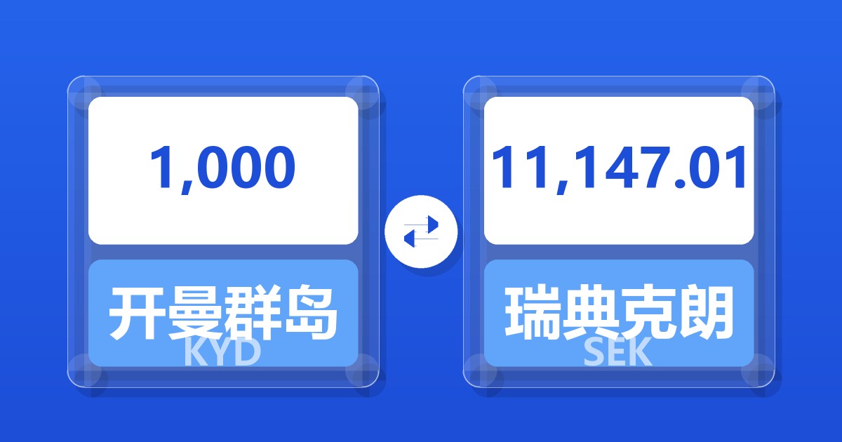 1,000 开曼群岛元 (KYD) = 11,164.41 瑞典克朗 (SEK)