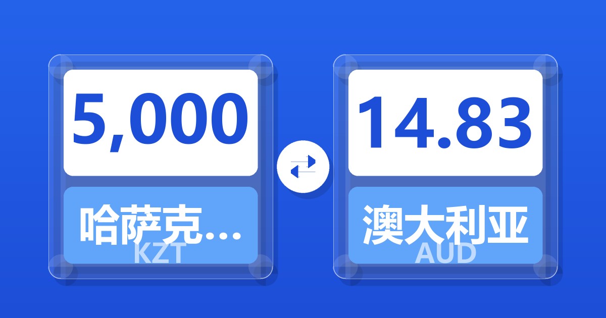 5,000 哈萨克斯坦坚戈 (KZT) = 14.86 澳大利亚元 (AUD)