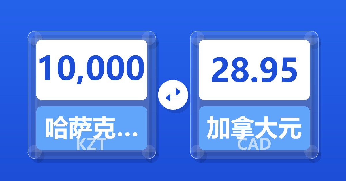 10,000 哈萨克斯坦坚戈 (KZT) = 28.99 加拿大元 (CAD)