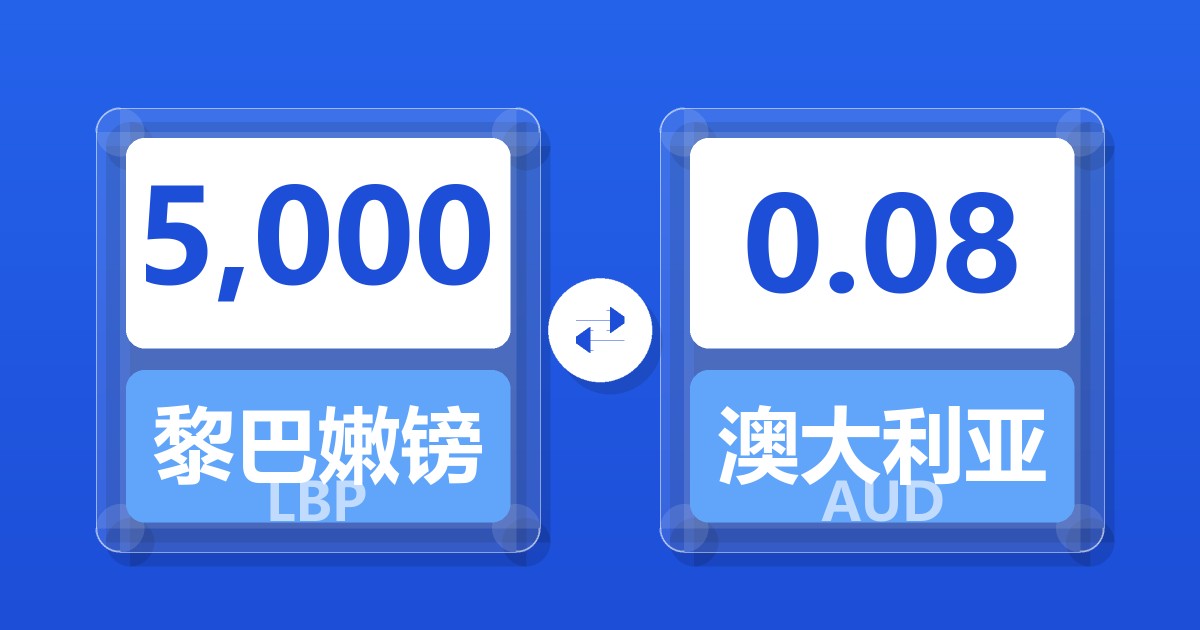 5,000 黎巴嫩镑 (LBP) = 0.08 澳大利亚元 (AUD)