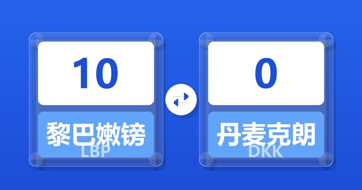 10 黎巴嫩镑 (LBP) = 0.00 丹麦克朗 (DKK)